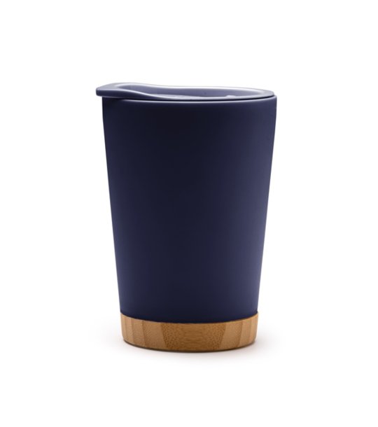 Stamina Cană MIRIN Albastru Închis 290 ml Cană cu pereți dubli, corp din polipropilenă reciclată și bază din bambus.