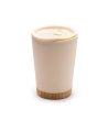 Cană cu pereți dubli, corp din polipropilenă reciclată și bază din bambus.