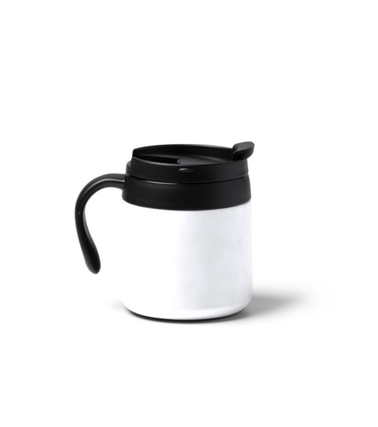 Stamina Cană VAKE albă 350 ml Cană fabricată din oțel inoxidabil 304 reciclat cu pereți dubli, capac cu filet și mâner.