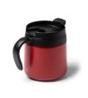 Cană fabricată din oțel inoxidabil 304 reciclat cu pereți dubli, capac cu filet și mâner.