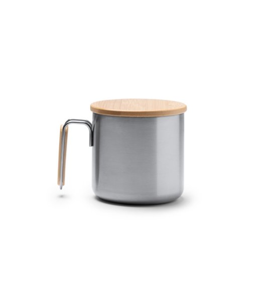 Cană fabricată din oțel inoxidabil 304 reciclat cu detalii din bambus pe mâner