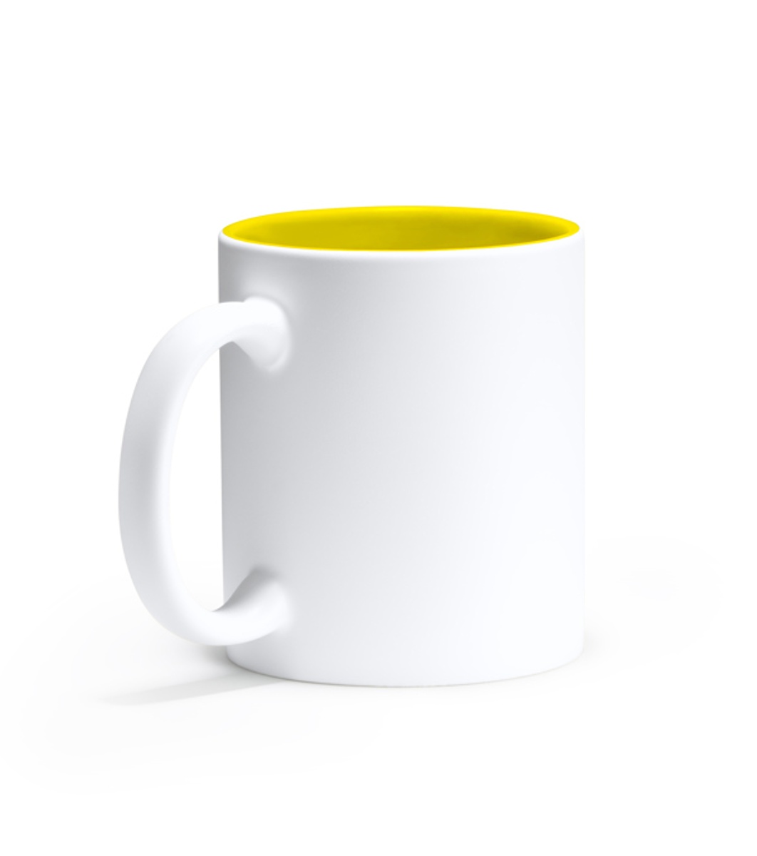 Stamina Cană ceramică albă ROIBO cu interior galben 350 ml Cană ceramică cu finisaj mat, ideală pentru marcare laser.