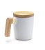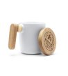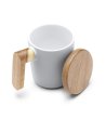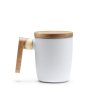 Cană ceramică albă cu mâner și capac din bambus LOVET