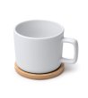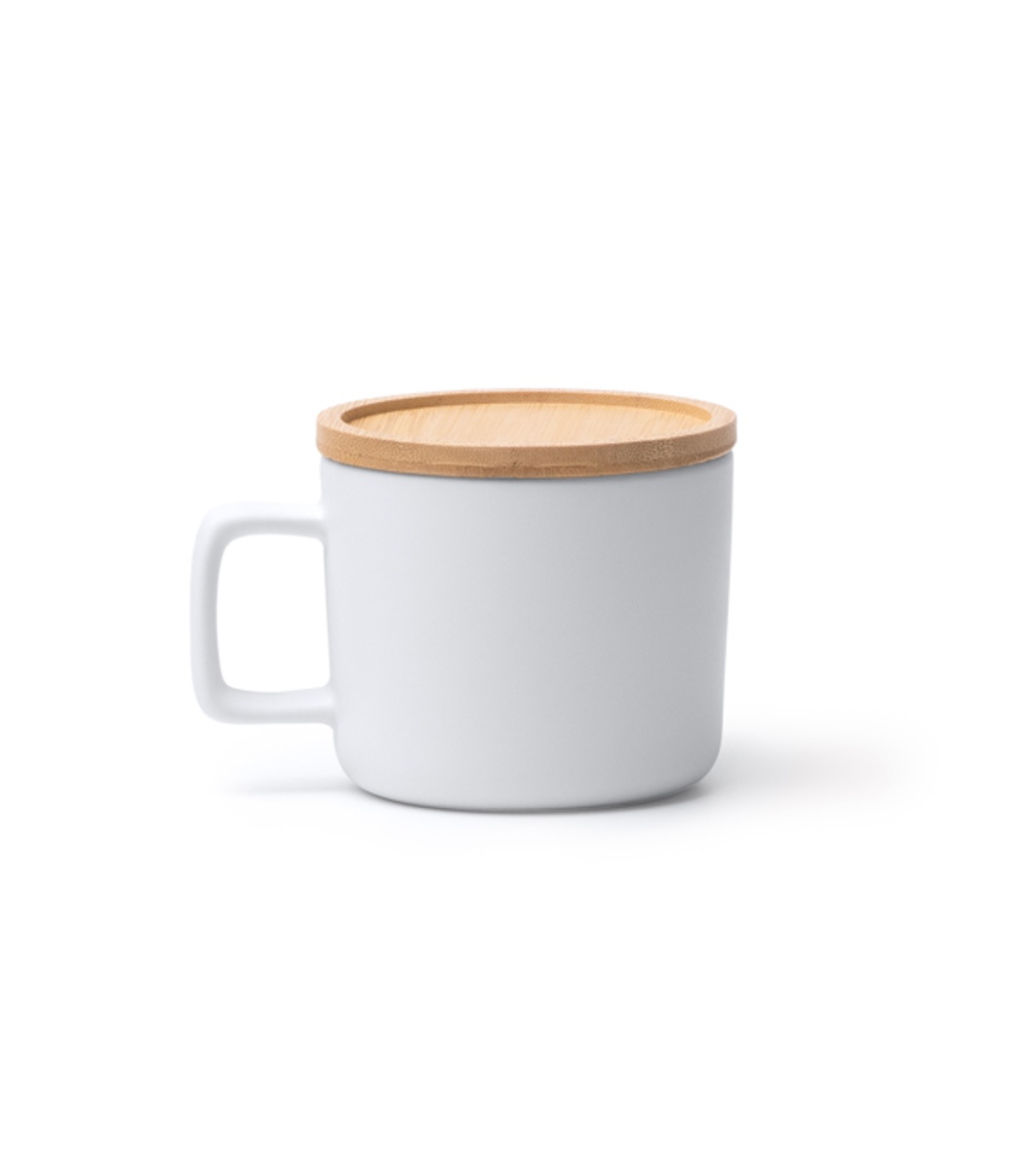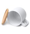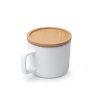 Stamina Cană ceramică albă mată cu capac MOLOK Cană ceramică mată cu capac și funcție de suport pentru pahare din bambus.