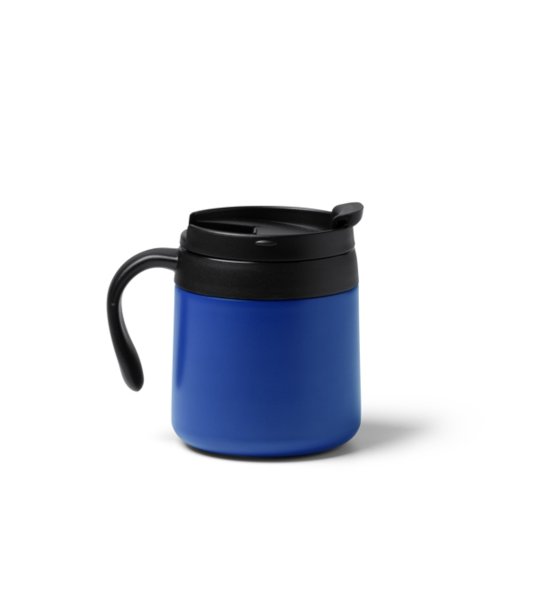Stamina Cana albastră VAKE 350 ml Cana fabricată din oțel inoxidabil 304 reciclat cu pereți dubli, capac cu filet și mâner.