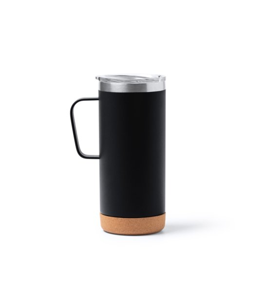 Stamina Cana metalică BEYRON cu pereți dubli, neagră, 600 ml Cana metalică cu pereți dubli, fund din plută și capac protector transparent.