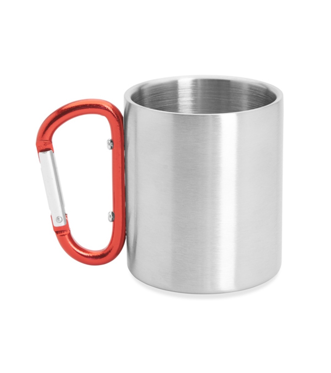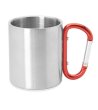 Stamina Cana metalică GUAYA 230 ml cu mâner roșu Cana metalică cu pereți dubli și carabinier, ideală pentru transport.