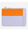 DuDu Carcasă de carduri din piele mov TIAGO cu fermoar Carcasă de carduri plată cu fermoar YKK și design multicolor. Are 7 compartimente pentru carduri de credit, un compartiment principal cu fermoar și 2 buzunare laterale.