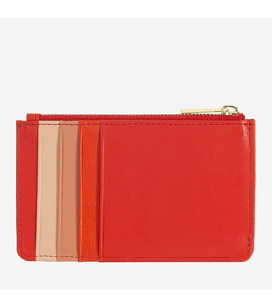 DuDu Carcasă de carduri din piele roșie BALI Carcasă de carduri cu o formă compactă și plată și fermoar metalic în partea de sus.