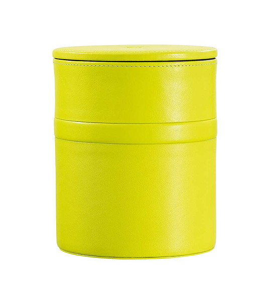 Util ca tavă dar ideal și ca suport de depozitare, acest borcan din piele îmbină estetica și funcționalitatea pentru a satisface iubitorii de ordine și organizare.