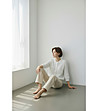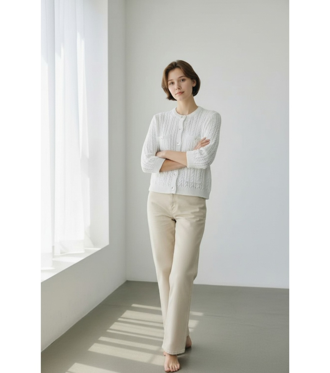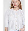 Cardigan alb ajurat cu nasturi, confecționat din bumbac organic și in