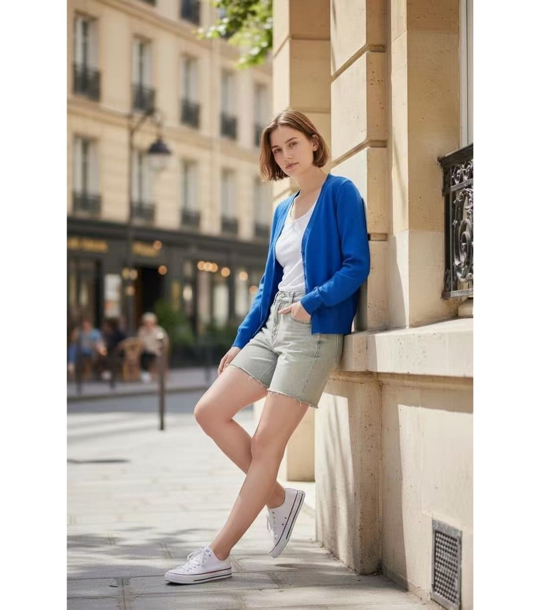 Assuili Cardigan albastru închis pentru femei cu decolteu în V Cardigan clasic tricotat cu decolteu în V.