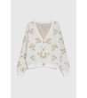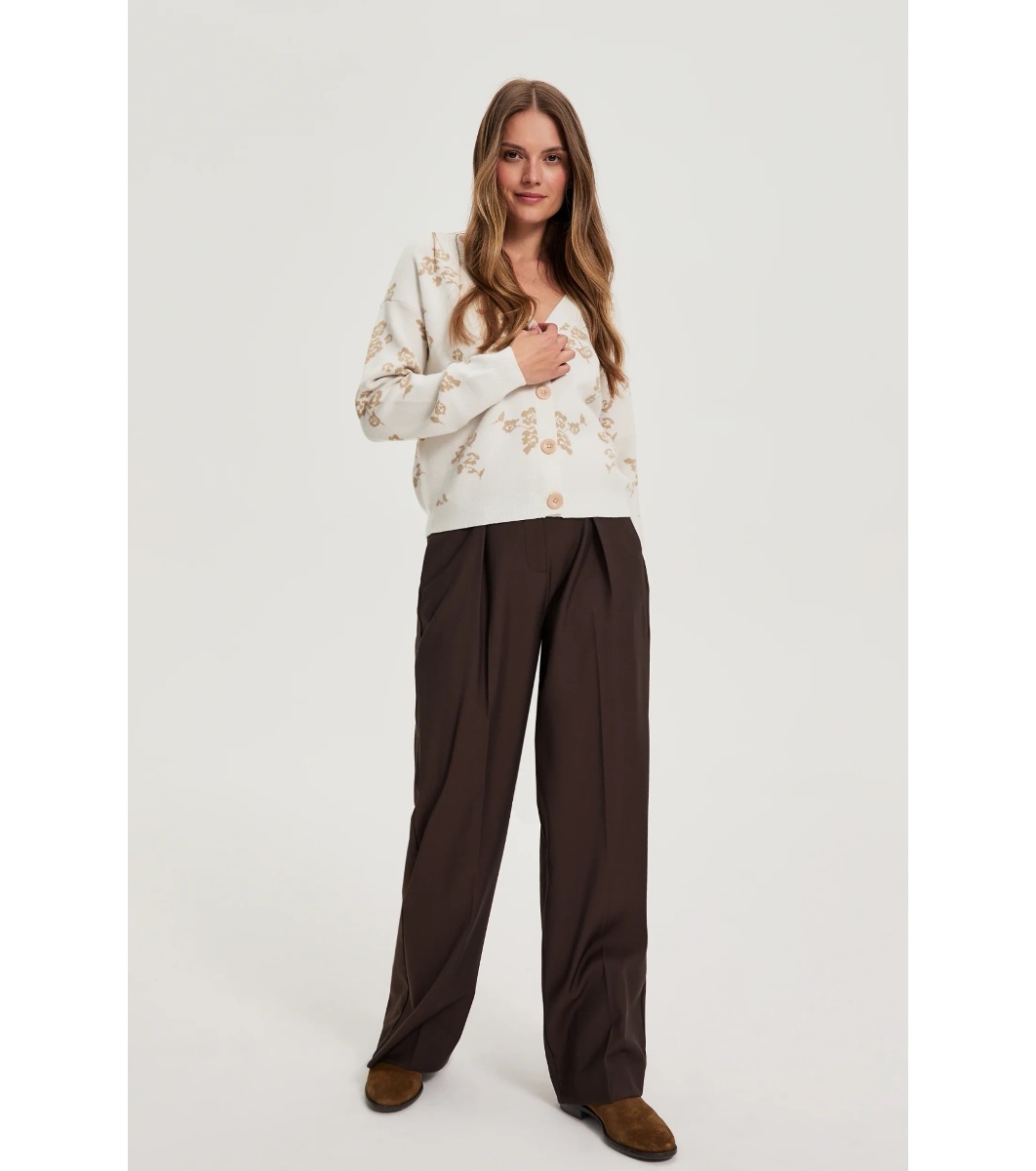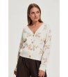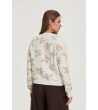 Cardigan de damă de culoare fildeș cu motive florale bej