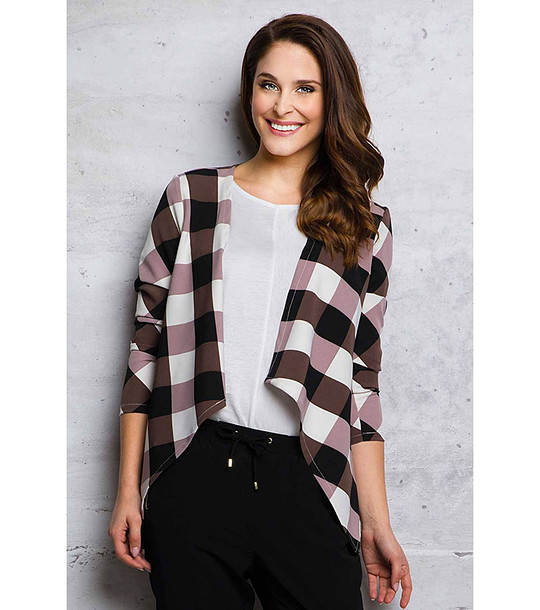 Infinite you Cardigan de damă din bumbac în carouri, în culorile maro, alb și negru, Loretta Mâneci lungi