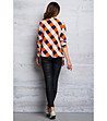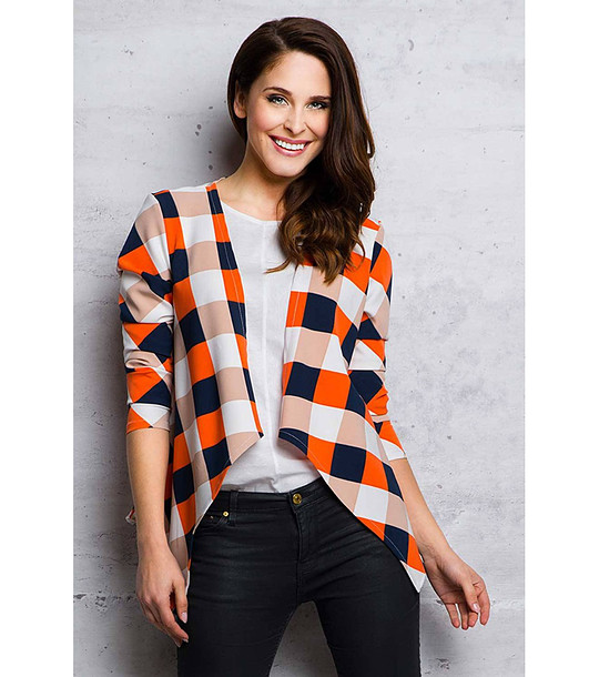 Cardigan de damă din bumbac în carouri, în portocaliu, alb și bleumarin