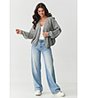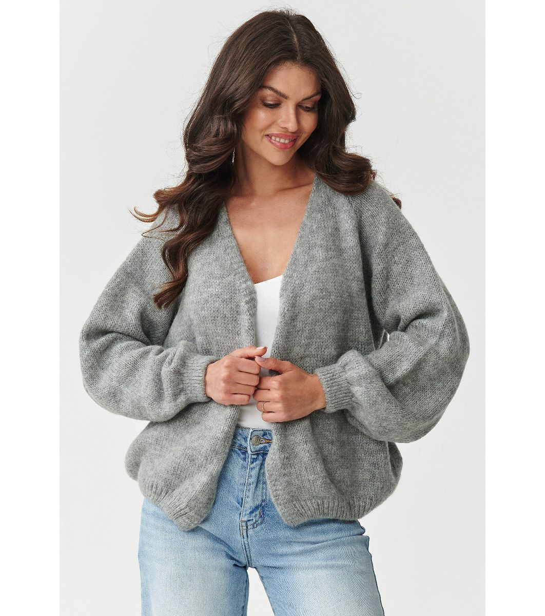 Makadamia Cardigan gri pentru femei cu mâneci voluminoase Tricotaj fin cu lână și mohair