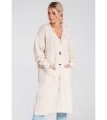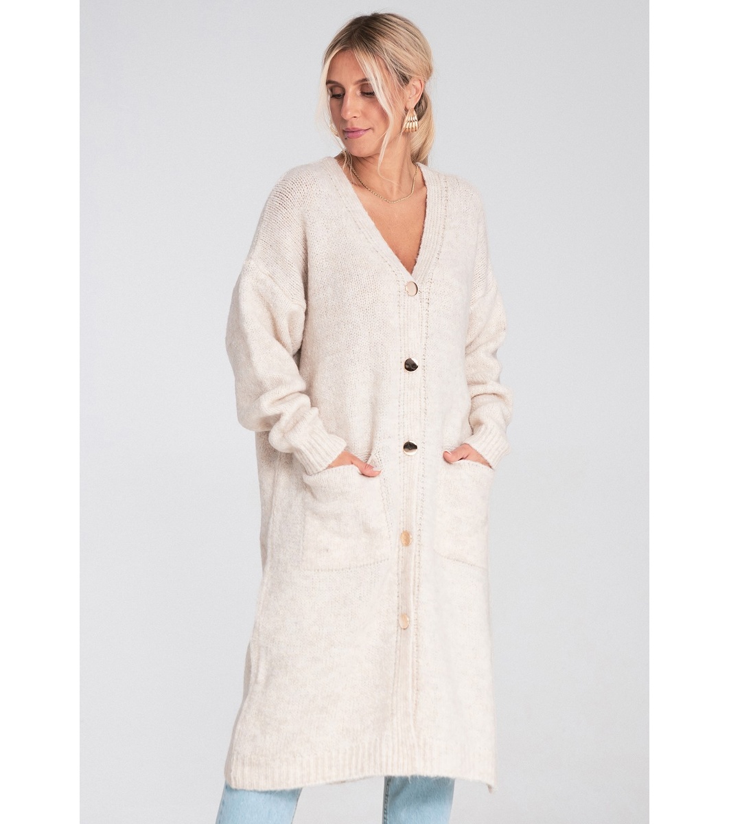 Cardigan lung de damă, bej, cu buzunare