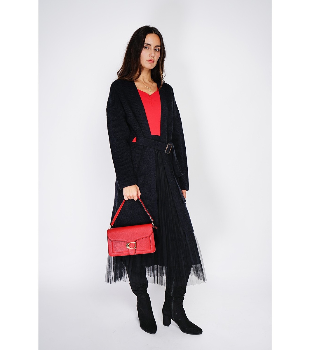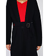 C&Jo Cardigan lung de damă, negru, cu curea Mâneci lungi