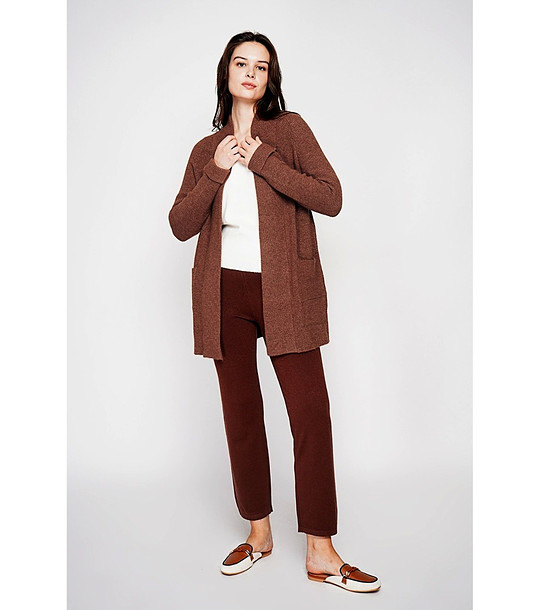 C&Jo Cardigan maro de damă cu buzunare Mâneci lungi