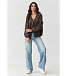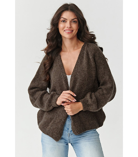 Makadamia Cardigan maro închis pentru femei, cu mâneci voluminoase Tricotaj fin cu lână și mohair