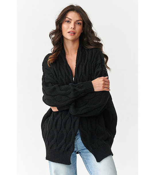 Cardigan negru pentru femei cu tricotaj spectaculos