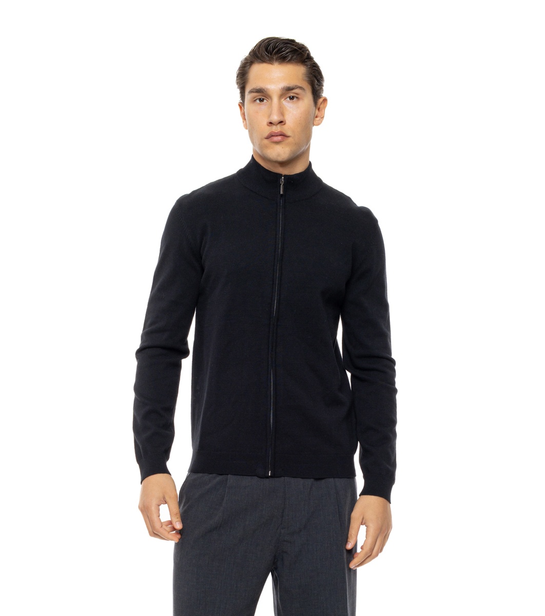 Biston Cardigan negru tricotat cu fermoar Bino Cardigan bărbătesc tricotat cu o siluetă curată