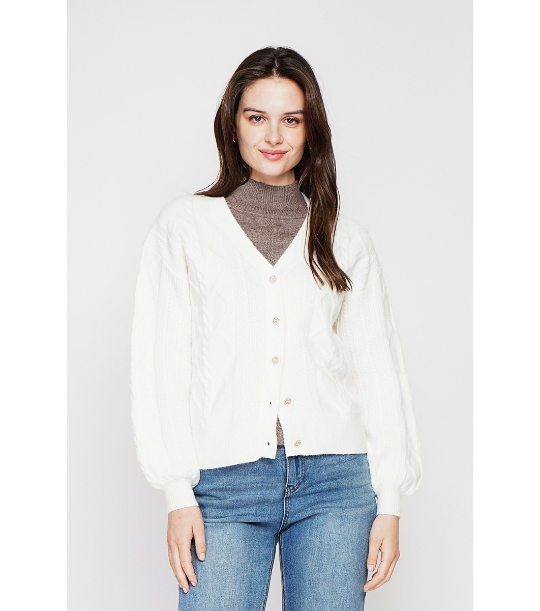 C&Jo Cardigan supradimensionat pentru femei, de culoare crem Decolteu în V