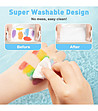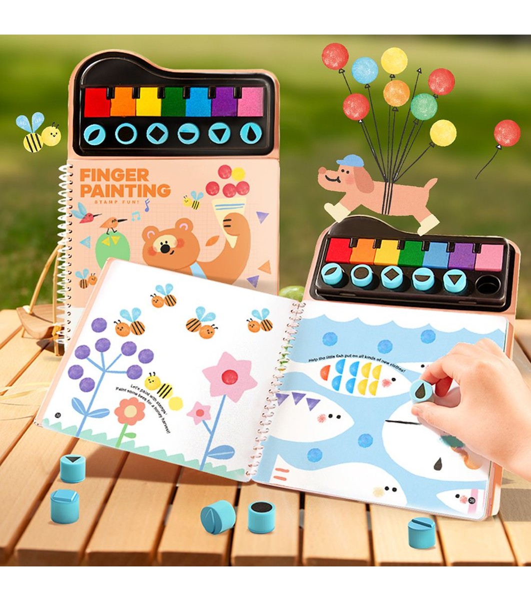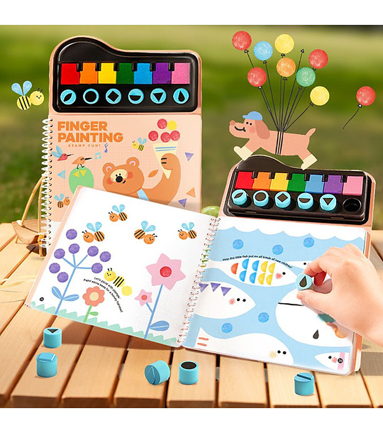 Cartea cu pictură și ștampile cu degetele le permite copiilor să se cufunde într-o lume a culorilor, imaginației și distracției. Își pot folosi vârful degetelor sau ștampilele incluse pentru a aplica cerneluri colorate pe paginile cărții și a crea diferite modele, scene și imagini. Datorită designului compact și portabil, toate componentele - cartea, călimarele și ștampilele - sunt integrate într-o singură unitate, ceea ce face ca setul să fie ușor de transportat și utilizat oriunde, fără riscul de a pierde componente.