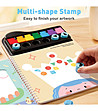 Cartea conține o varietate de pagini tematice - animale, litere, vreme, fructe și multe altele. Așadar, copiii nu numai că desenează, dar învață și concepte noi și ajung să cunoască lumea din jurul lor în timp ce se joacă. Utilizarea ștampilelor geometrice susține înțelegerea timpurie a formelor și figurilor. Cernelurile sunt lavabile și sigure - se curăță ușor cu o cârpă umedă sau un șervețel, fără a lăsa pete. Acest set este o modalitate excelentă pentru copii de a dezvolta percepția culorilor și arta artistică, coordonarea mână-ochi, gândirea creativă și imaginația..