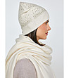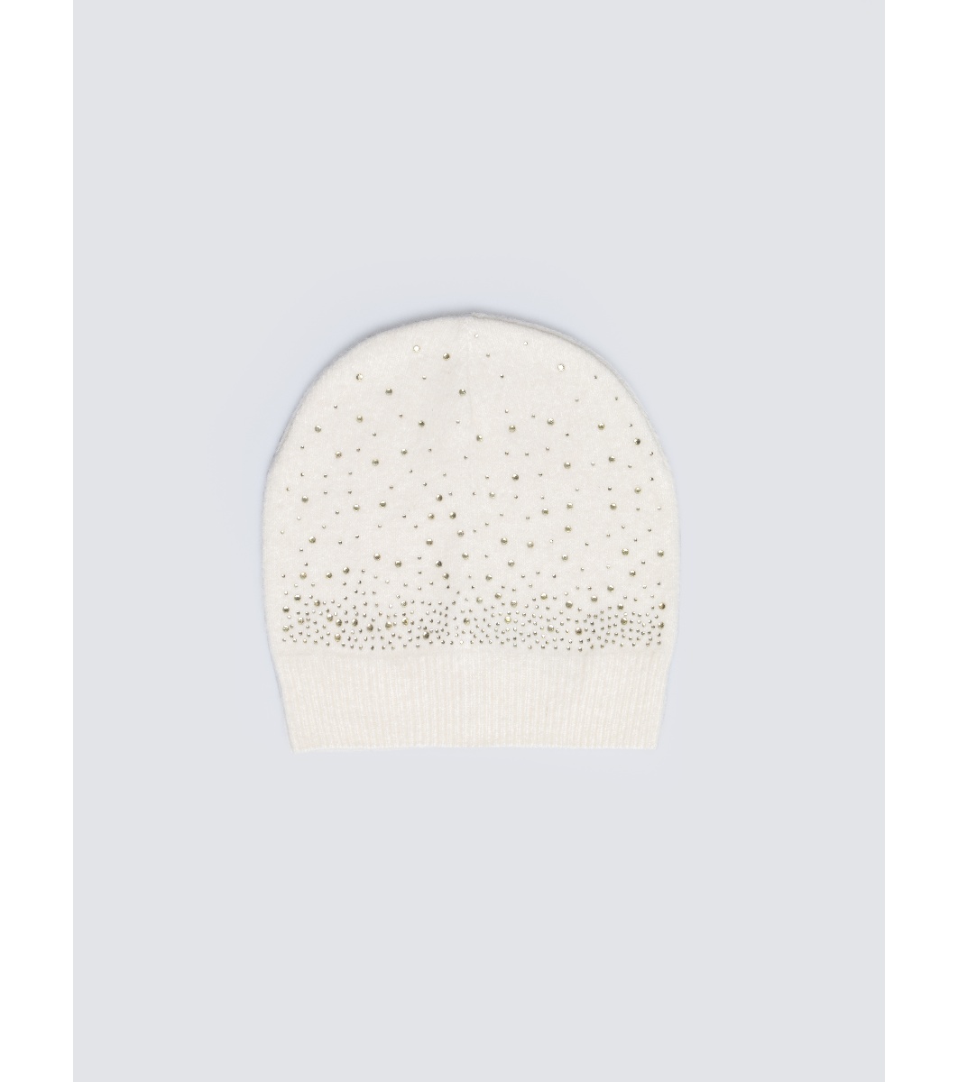 Căciulă albă tricotată pentru femei cu pietre decorative