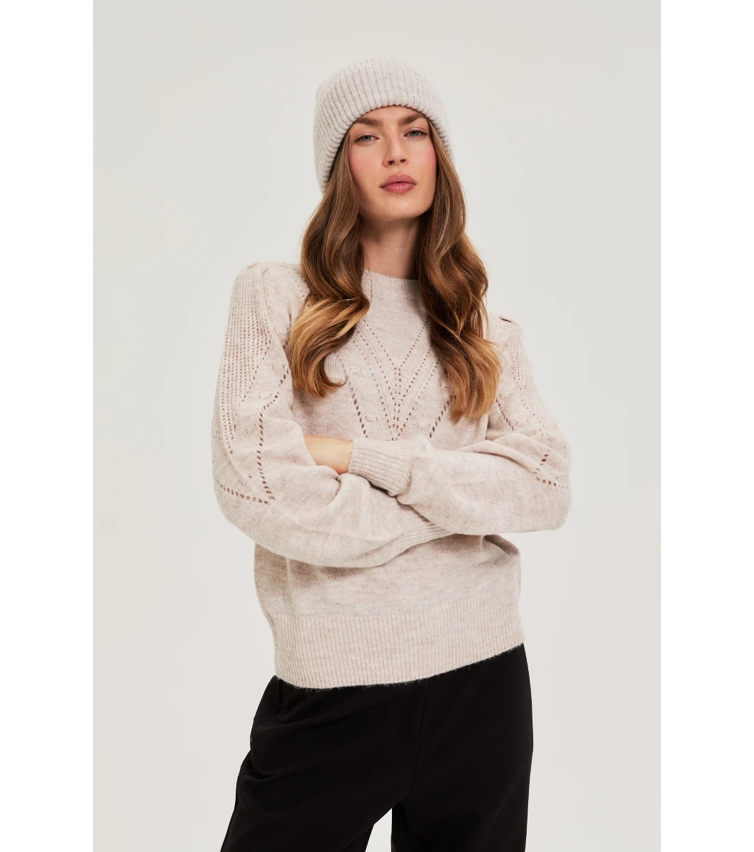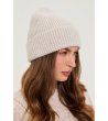 Căciula are un design curat și tricotaj striat.