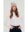 Căciula are un tricotaj striat și un design clasic.