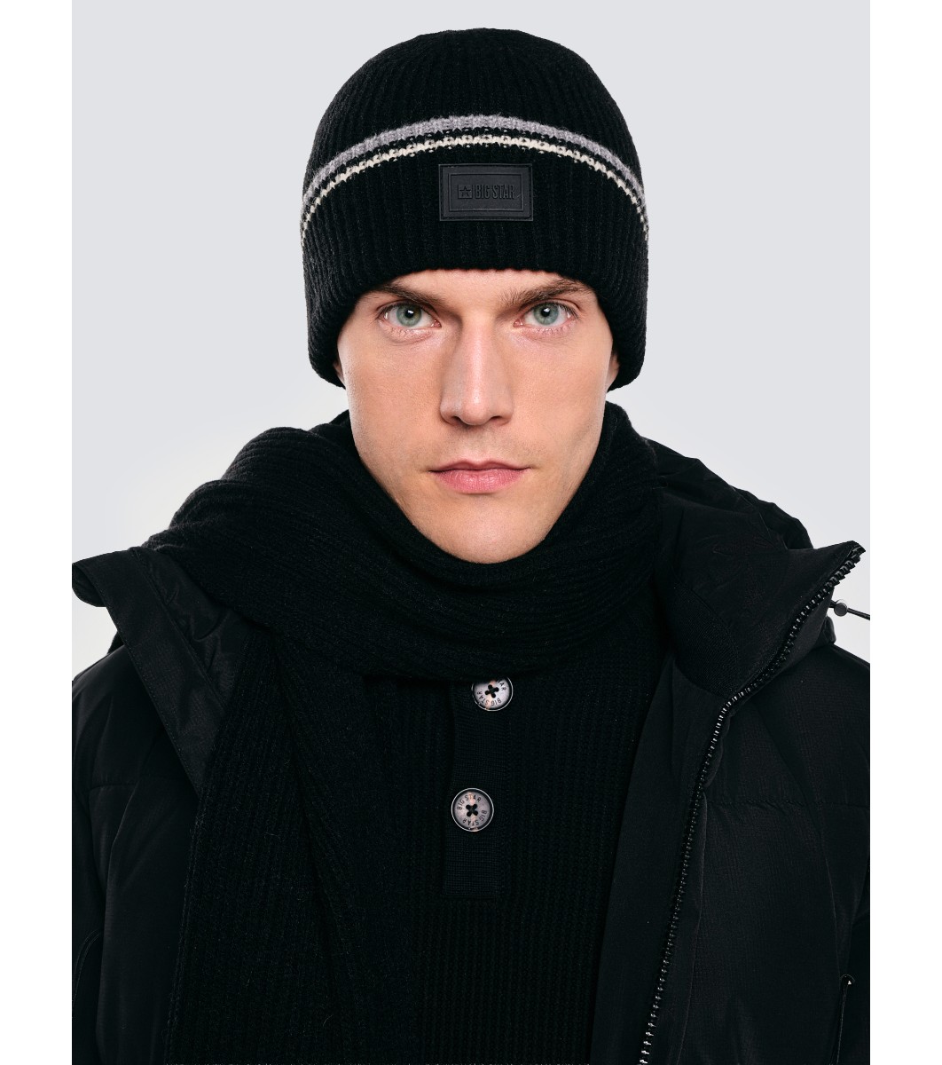 Big Star Căciulă neagră de iarnă pentru bărbați cu dungi contrastante WANDEGOR Design clasic