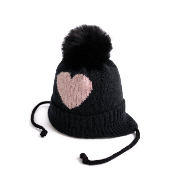 Căciulă pentru copii, neagră și roz, cu șireturi SWEETHEART
