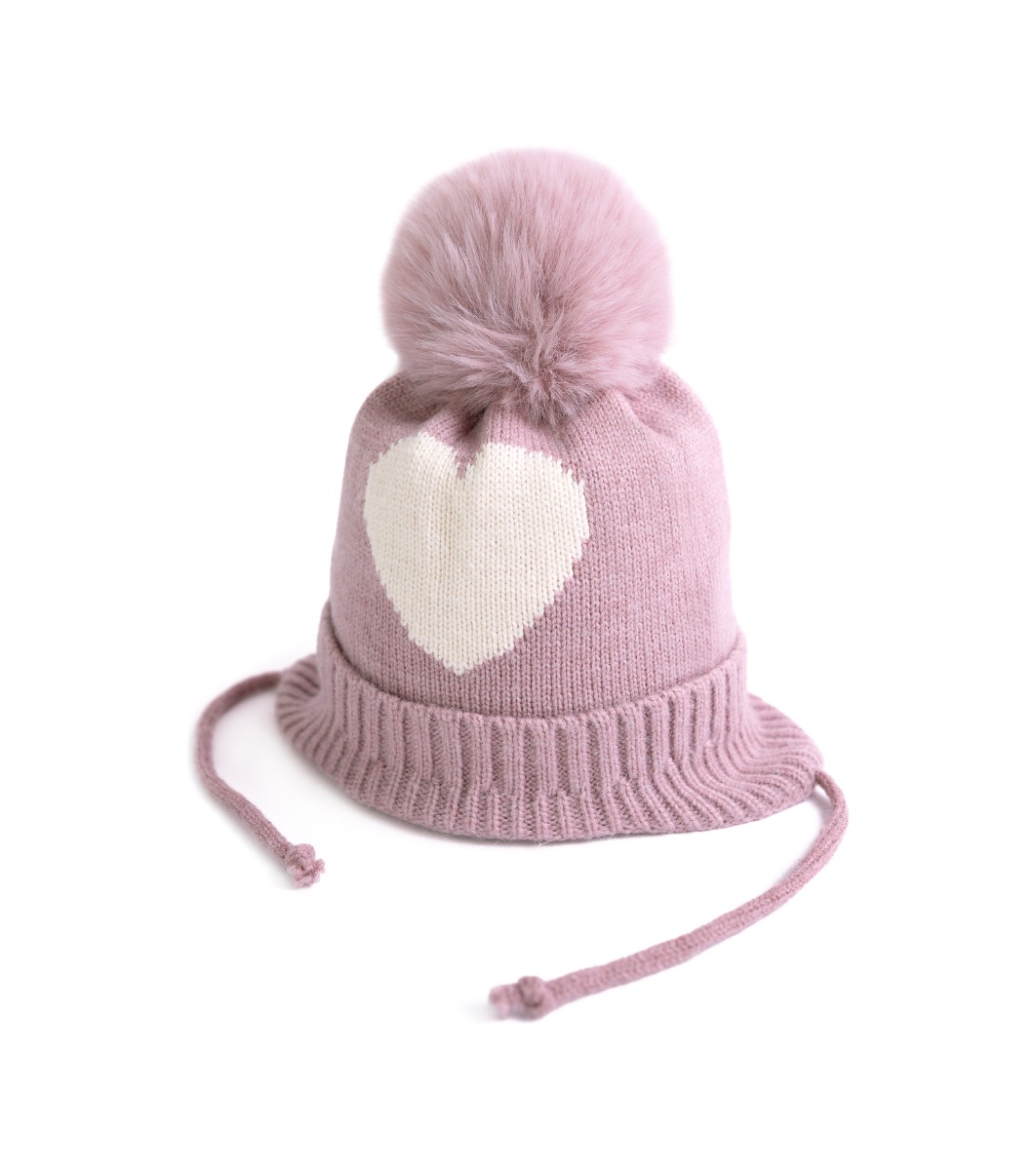 Căciulă pentru copii roz și ecru cu șireturi SWEETHEART