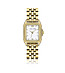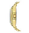 Ceas de damă cu cuarț, cu carcasă dreptunghiulară și lanț metalic de culoare aurie.