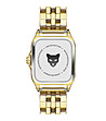 Carcasă aurie cu spate din oțel inoxidabil și finisaj lustruit.