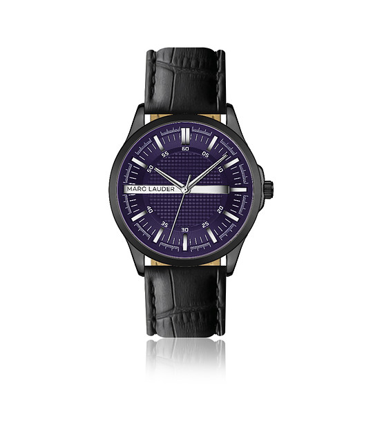Marc Lauder Ceas Bellagio negru cu curea din piele de croco Ceas cu carcasă rotundă de 42 mm.