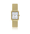 Ceas analog de damă cu carcasă dreptunghiulară de 26 × 34 mm și lanț din plasă aurie.