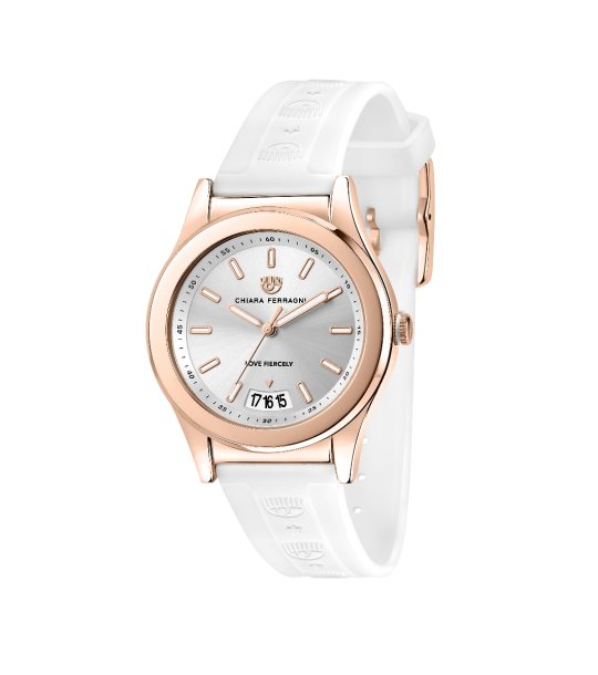 Chiara Ferragni Ceas alb de damă cu carcasă auriu-roz Ceas de mână cu quartz de damă