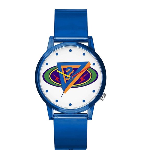 Ceas analog cu mecanism cu cuarț și design unic al cadranului.