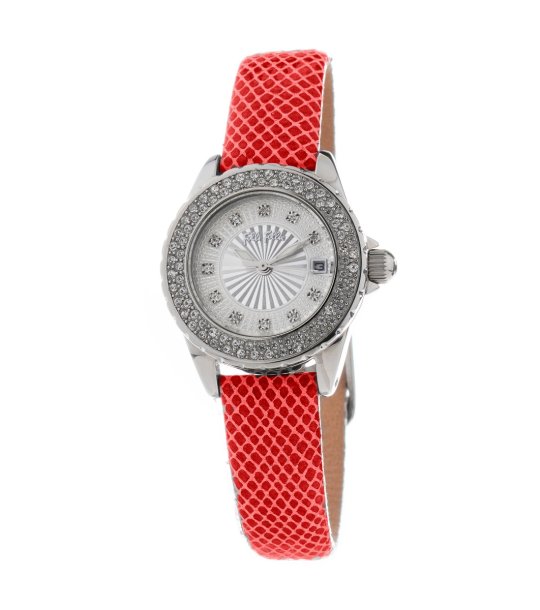 Folli Follie Ceas analog de damă argintiu cu curea roșie