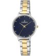 Ceas analog de damă argintiu și auriu cu cadran albastru închis