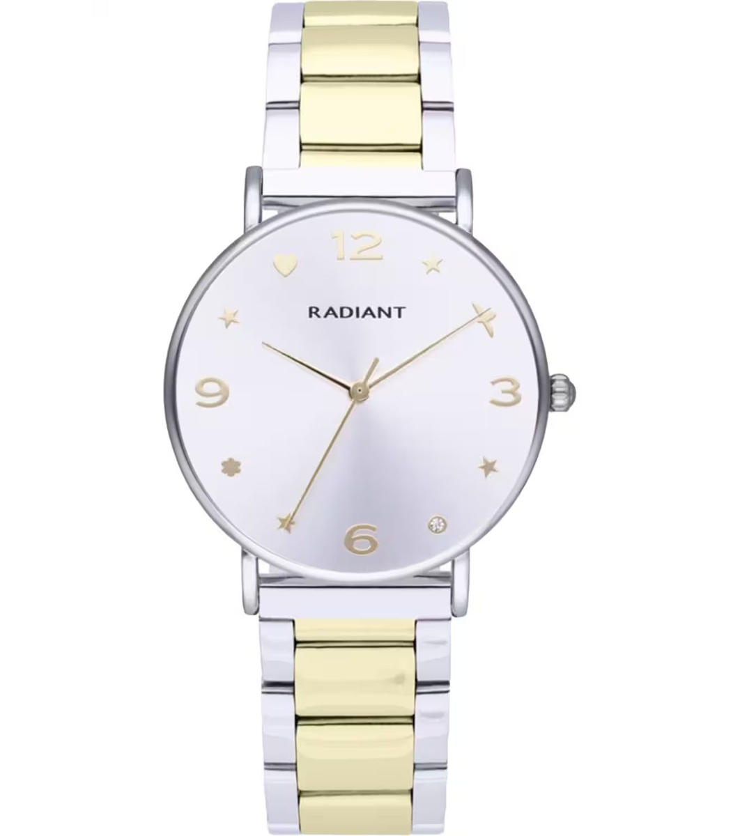 Ceas elegant de damă, cu afișaj analog și mecanism cu cuarț. Decorat cu simboluri unice pe cadran.