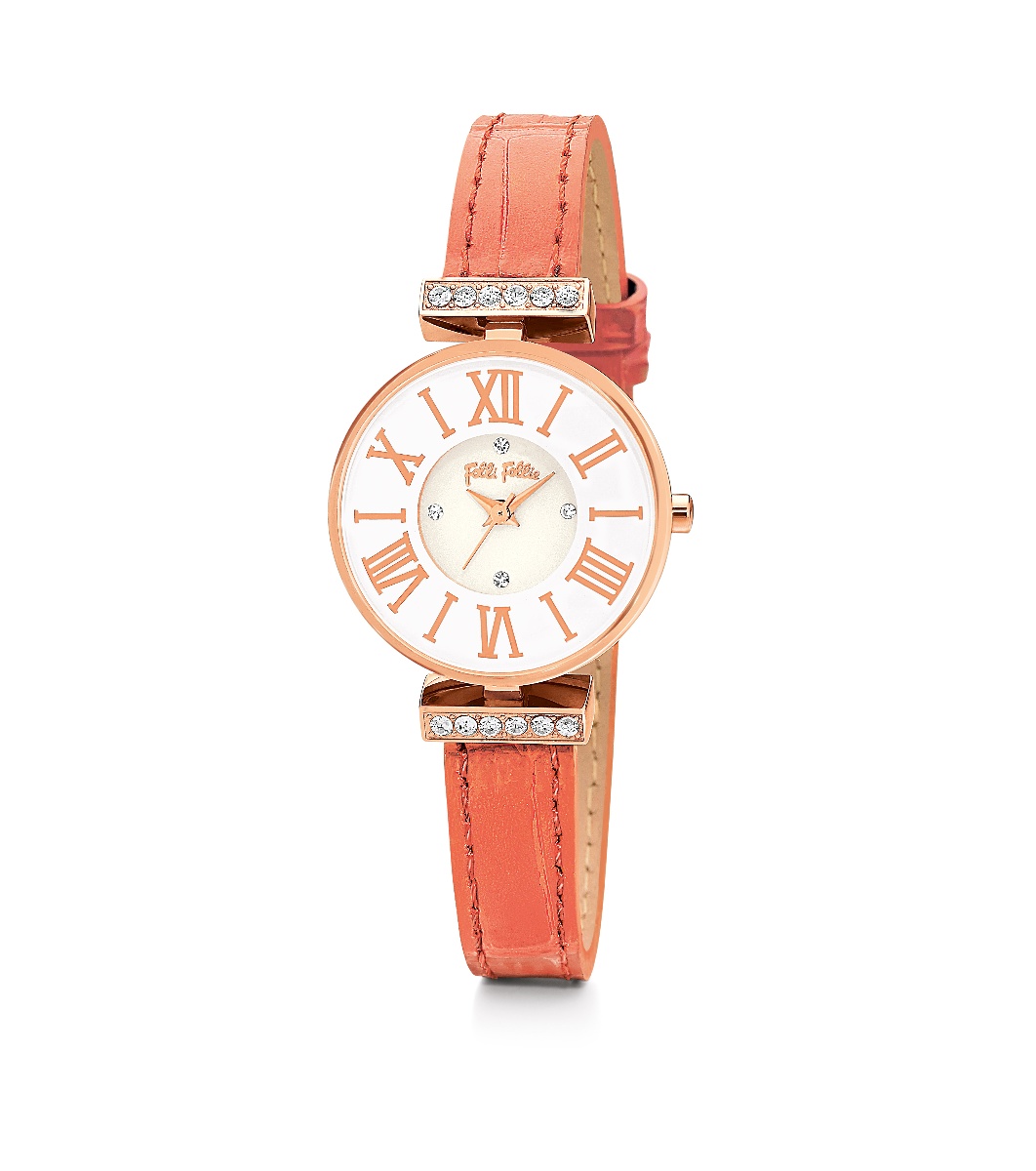 Ceas elegant de damă cu cadran rotund și cifre romane. Lanțul are elemente decorative. Potrivit pentru diverse ocazii.