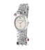 Ceas elegant de damă cu afișaj analog și design stilat. Carcasa este rotundă și are linii curate. Cadranul are elemente decorative, iar lanțul are o structură interesantă.