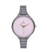 Ceas analog de damă din grafit cu cadran roz