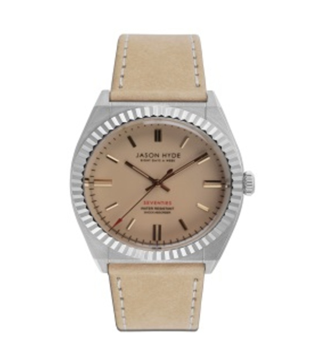Un ceas cu design clasic și afișaj analog.