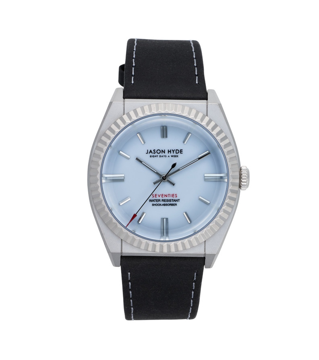 Un ceas cu afișaj analogic clasic și mecanism cu cuarț.