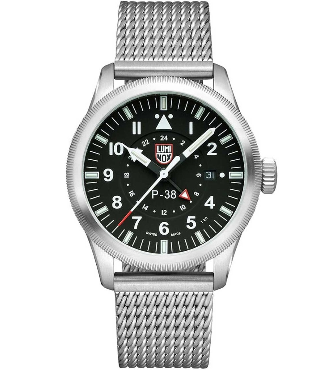 Ceas analogic bărbătesc cu mecanism cu cuarț și funcție de al doilea fus orar. Are un cadran rotund cu cifre și ace vizibile. Potrivit pentru piloți și alți profesioniști.